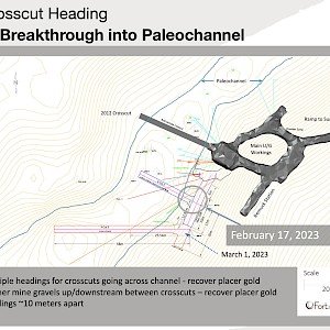 SASKATOON, SK – March 2, 2023 – Omineca Mining and Metals Ltd. (TSXV: OMM) ("Omineca" or the "Company") is pleased to report that their Joint Venture partner, Hamilton Gold Royalties (“HGR”), and mining contractor Fortis Mining Engineering and Manufacturing (“Fortis”) have successfully entered the placer gold bearing paleochannel at the Wingdam underground project, located 40 km east of Quesnel, British Columbia. Fortis reports that they are seeing placer gold in the paleochannel gravels similar in character and size to the gold recovered in the 2012 bulk sample. The gold bearing material is being stockpiled in a remuck station, purpose cut into bedrock underground and will be processed through the wash plant in due course. The results of placer gold recovery will be announced as they are tabulated.