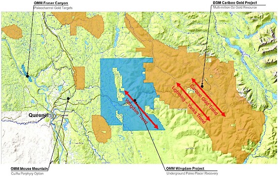 SASKATOON, SK – December 8, 2021 – Omineca Mining and Metals Ltd.’s (TSXV: OMM) ("Omineca" or the "Company") reports that it has finished compiling the data from its 2021 exploration programs targeting potential lode gold sources of the Paleoplacer gold at the company’s Wingdam Project in the Cariboo Mining District in South Central British Columbia. The 2021 program was significantly expanded over the previous year’s exploration program and entailed detailed geophysics, rock, soil, and stream sediment sampling programs which have been correlated with the 2020 exploration and drill result data. A prioritized 2021/22 drill program is currently being finalized for the following high priority target areas: